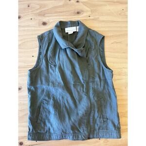 Cynthia Rowley Green Sleeveless Vest Women's Medium Zip-Up Linen Top