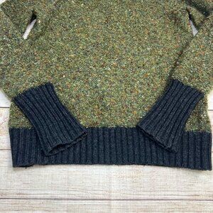 Cynthia Rowley Green Speckled Turtleneck Sweater Small Charcoal Trim Cozy