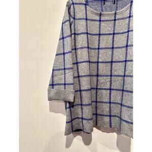Cynthia Rowley Grey Blue 3/4 Sleeve Checkered Knit Pullover Sweater Work Office