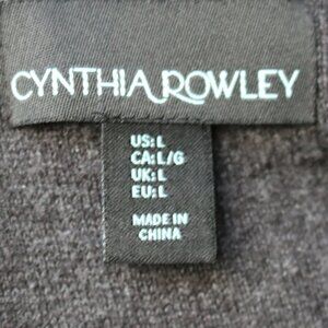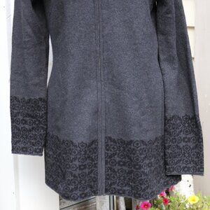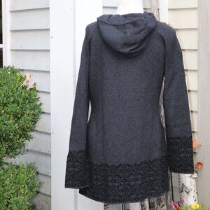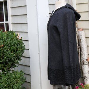 Cynthia Rowley Grey w Black Floral Band Trim Long Hooded Full Zip Cardigan LARGE