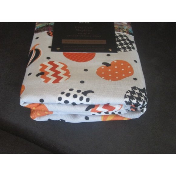 Cynthia Rowley Halloween Multi Pattern Pumpkins Dinner Napkins Set 6 Curious NWT