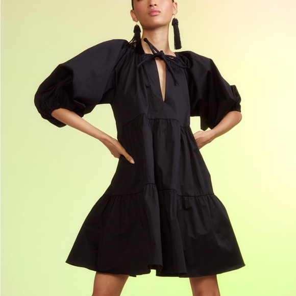 Cynthia Rowley Kasbah Black Cotton Mini Tier Dress Sz M Retail $425