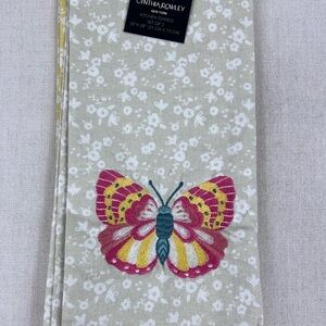 🛍️Cynthia Rowley Kitchen Towels (2) Floral Butterfly Yellow Tan 100% Cotton NWT