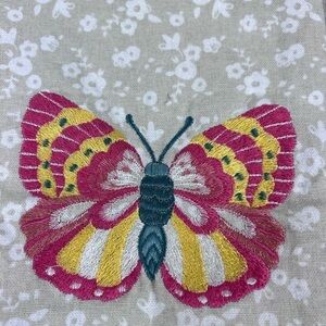 Cynthia Rowley Kitchen Towels (2) Floral Butterfly Yellow Tan 100% Cotton NWT