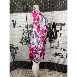 ITEM:Cynthia Rowley L Pink Satin Floral Pockets Tie Front Spa Robe
