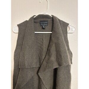 Cynthia Rowley Large Vest 100% Extra Fine Merino Wool Shawl Collar Ribbed Knit