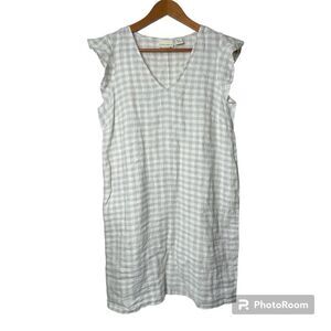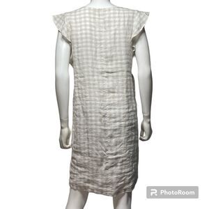 Cynthia Rowley Linen Beige White Gingham Plaid Pull Over Dress Womens Size S