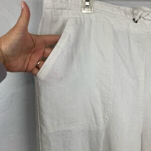 Cynthia Rowley Linen Capri Pants Size 2X White Women's Drawstring Lagenlook