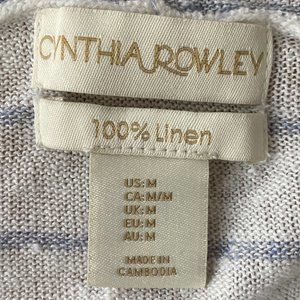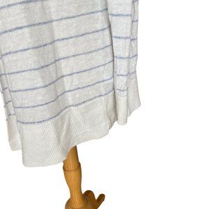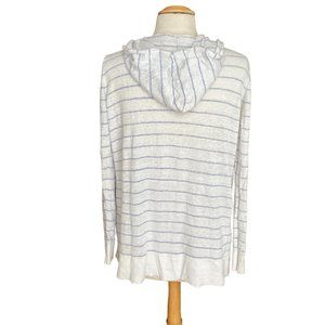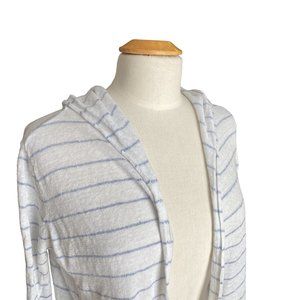Cynthia Rowley 100% Linen Nautical Striped Coastal Grandmother Hooded Cardigan-M