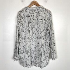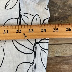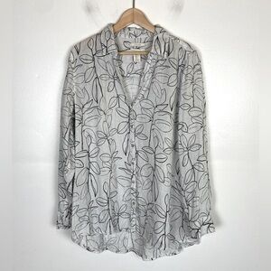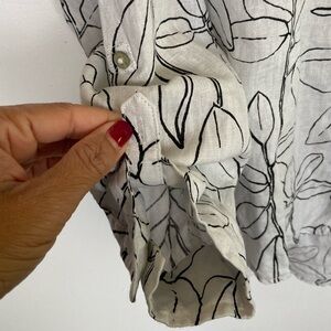 Cynthia Rowley Linen Floral Button Down Shirt Size XL White Roll Tab Sleeves