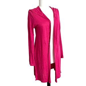 * Cynthia Rowley Linen Hooded Duster Cardigan Size S Pink Long Lightweight Beachy
