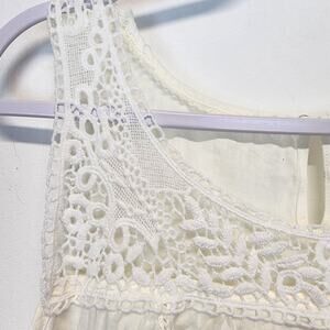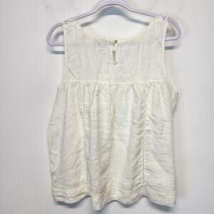 Cynthia Rowley Linen Lace Tank Top Size XL Ivory Pleated Round Neck Flowy Boho