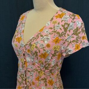 Cynthia Rowley Linen + Rayon Pink & Orange Floral Fit & Flare Mini Dress