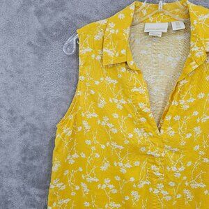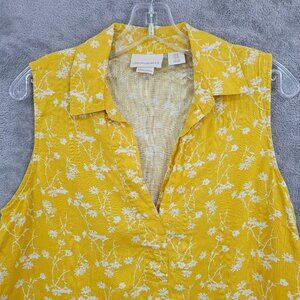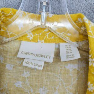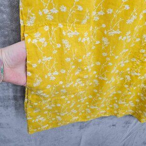 Cynthia Rowley Linen Shift Dress 10 Yellow White Floral Collared Pockets Breezy