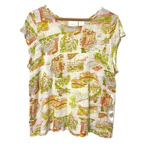 Cynthia Rowley Linen Top Size L Cap Sleeve Beach Summer Vacation Casual
