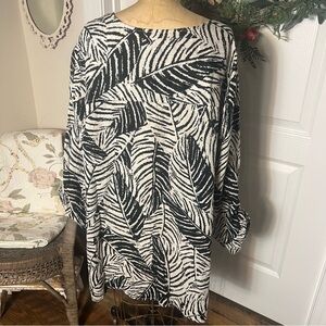 Cynthia Rowley Linen Tunic Black Cream Palm Leaf Print Womens Button Down 3X