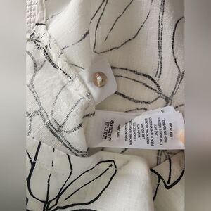 Cynthia Rowley Linen Minimalist Coastal White and Black Leaf Blouse