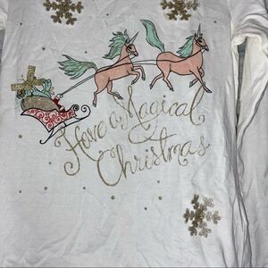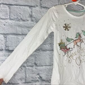 Cynthia Rowley Longsleeve glitter christmas top w/toole ruffle hem sz m 5-6