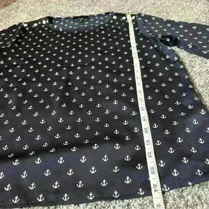 Cynthia Rowley M Anchor Print Blouse Button Shoulder Long Sleeve Top