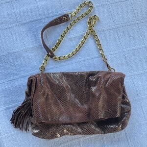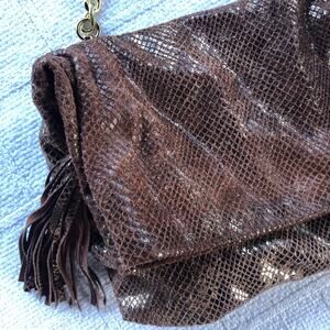 Cynthia Rowley Metallic Snake Skin Purse Fold Over Tassle Chain Western Boho