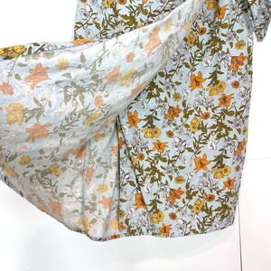 Cynthia Rowley Midi Skirt Linen Wrap Small Light Blue Floral Summer Leaves Long