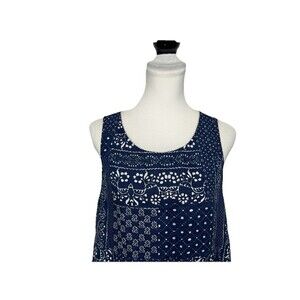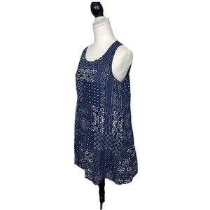 Cynthia Rowley Mini Dress Beach Cover Up Size M 100% Line Blue & White Floral