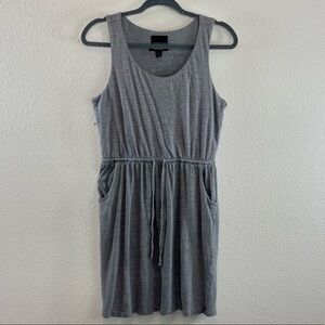 Cynthia Rowley Mini Dress Grey XS Linen Elastic Drawstring Waist Pockets Tank
