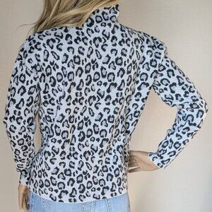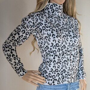 Cynthia Rowley Mock Neck Sweater Womens Small Leopard/Cheetah Cropped Metallic