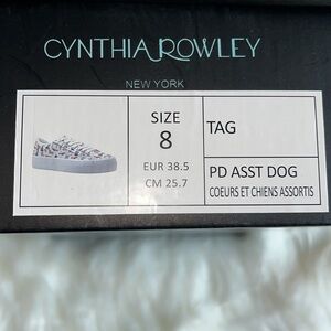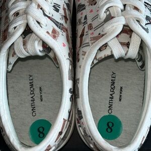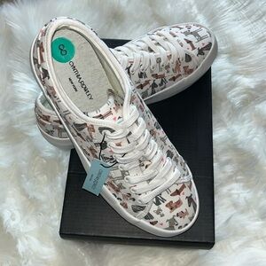 🆕 Cynthia Rowley Multi Dog Print with Hearts White Lace Up Sneakers Puppy Size 8