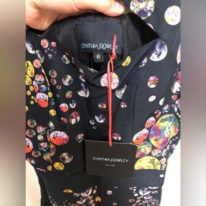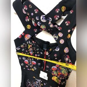 Cynthia Rowley "NWT" Cut Out Dress with Botanical Dot in Black Size 6