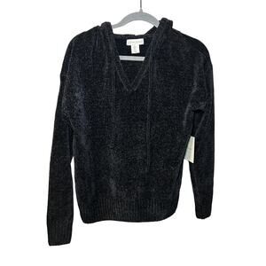 Cynthia Rowley Chenille Knit Pullover Hoodie Size Small Black Drawstring NWT