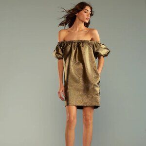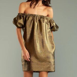Cynthia Rowley NWT Sz S Gold Metallic Off the Shoulder Mini Shift Dress Cocktail
