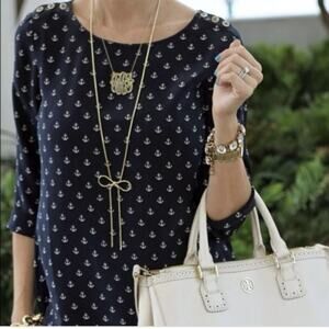 Cynthia Rowley Nautical Anchor Blue Blouse Top Small