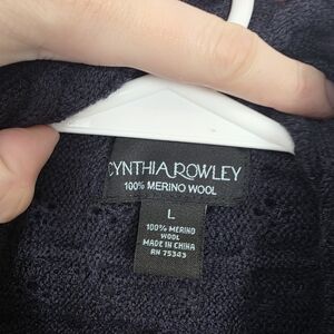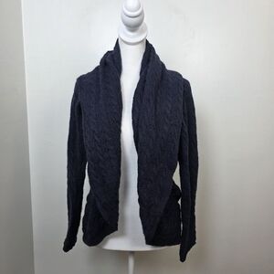 Cynthia Rowley Navy Blue 100% Merino Wool Shawl Collar Cardigan Size Large