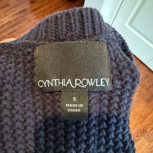 Cynthia Rowley Navy Button Back 3/4-Sleeve Cable Knit Sweater