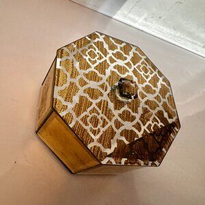 Cynthia Rowley New York Mirrored Beveled Glass Jewelry Trinket Box Golden Octago