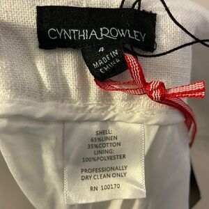 Cynthia Rowley New York White Linen Cotton Blend Scallop Hem Shorts size 4. New with tags with pink stitching in two areas on back. See pictures.