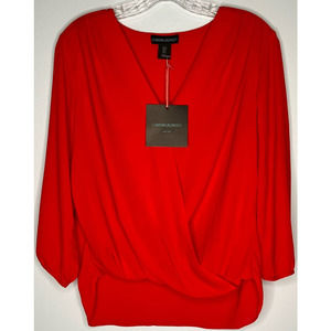 Cynthia Rowley New York blouse top true red long sleeve V-neck high low NWT