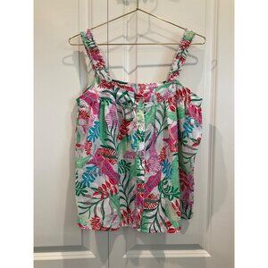 Cynthia Rowley New York tropical top smocked straps button back 100% linen SMALL