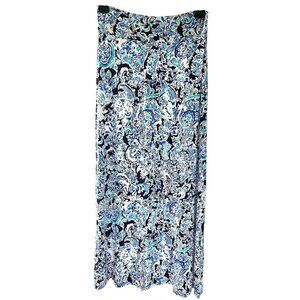 Cynthia Rowley Paisley Print Boho Long Maxi Skirt Blue Turquoise Black White Size Medium