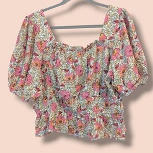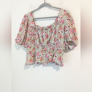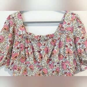 Cynthia Rowley Pink Floral Ruffle Puff Sleeve Cropped Top Feminine Cottagecore