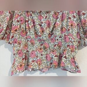 Cynthia Rowley Pink Floral Ruffle Puff Sleeve Cropped Top.