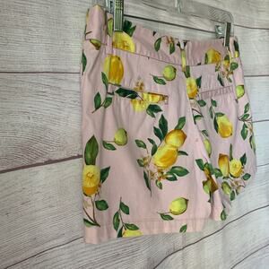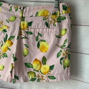 Cynthia Rowley Pink Lemon Print Chino Shorts with Pockets Cotton Blend Size 6
