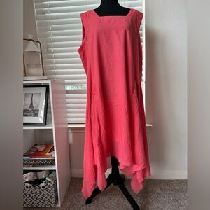 Cynthia Rowley Plus 1X Coral Pink Linen Blend Midi Dress with Pockets & Asymmetric Hem