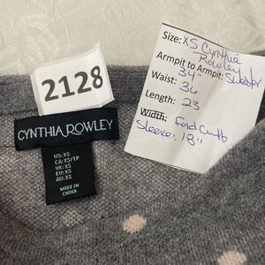 Cynthia Rowley Pullover XS Sweater Gray/Pink Polka Dot 3/4 Sleeve BoatNeck Knit