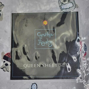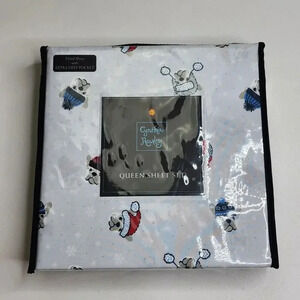 Cynthia Rowley Queen Sheet Set with Two Pillowcases Dogs Hats Winter Snow New