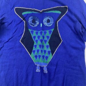 Cynthia Rowley Royal Purple Owl Sweater Sequins Round Neck Back Zip Cotton Sz M