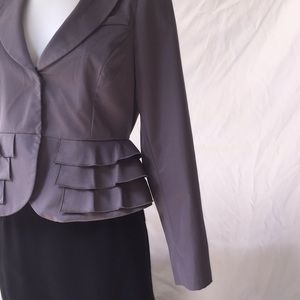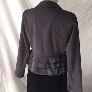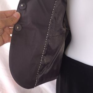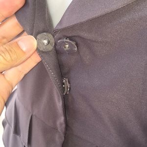 Excellent condition! Beautiful dark gray fabric. This fabric has a little bit of sheen to it. There’s 2 tiny spots on the back of the right sleeve. Please see pictures for reference.