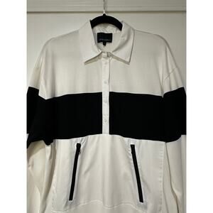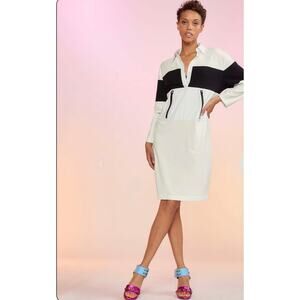 Cynthia Rowley Rugby Striped Cotton Knit Shirt Dress White Black Size Large EUC