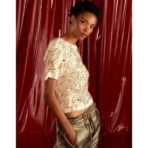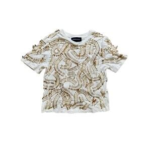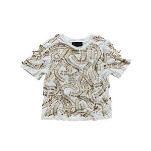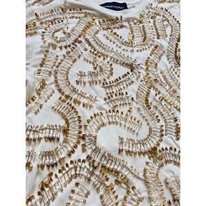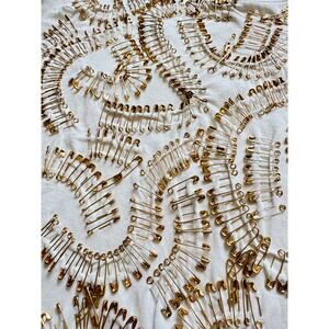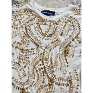 A vibrant twist on the classic crew neck tee, the Cynthia Rowley Safety First Tee features hand-applied gold safety pins—functional and striking—on a soft-spun cotton, distressed fabric. Designed for an edgy yet comfortable look, this tee adds an instant cool factor to any casual outfit.